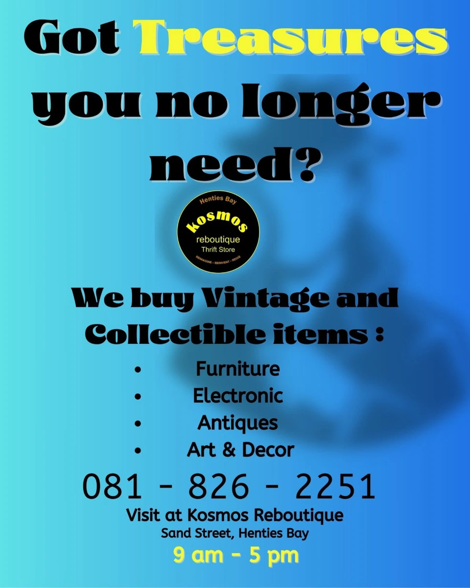 Auctions to be held in Henties Bay at Kosmos ReBoutique.